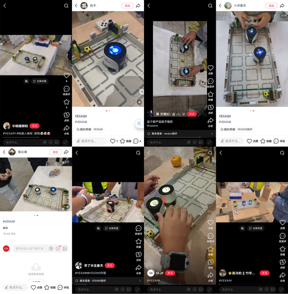 值得一提的是, VEX 最新智能机器人 VEX AIM 先后亮相华南区赛与华北大区赛,成为展区中一大亮点,吸引了众多目光。现场发起的“ VEX AIM 足球挑战打卡游戏”更是让参赛选手们零距离感受到了 AI 机器人的魅力。接下来的赛事中,大家还有更多机会体验 VEX AIM 足球挑战,不要错过!