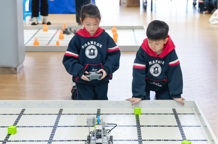 近日,上海市民办尚德实验学校举办的第六届尚德科创中心课程展(工程季)活动开幕,这是一场覆盖尚德全学段学生及众多校外参赛队伍的活动,参赛人数超过500人。其中 VEX 活动汇聚了上海多所名校强队—— VIQRC 赛项 58 名选手、V5RC 赛项 22 支劲旅同台竞技。